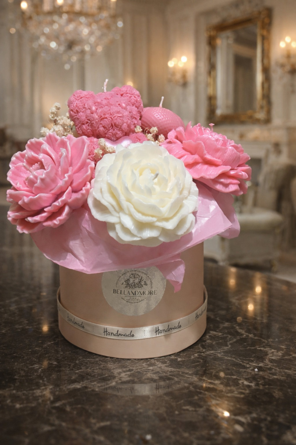 Descubre la elegancia caprichosa de esta vela artesanal única de BELLANDMORE!